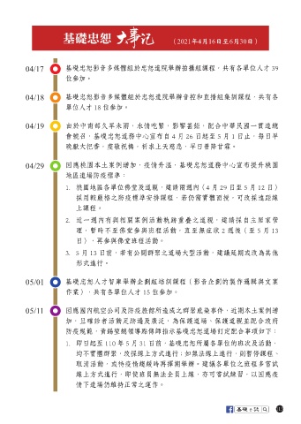 1. 即日起至 110 年 5 月 31 日前,基礎忠恕所屬各單位的班次及活動,