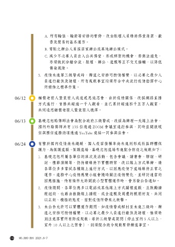 3. 疫情未達第三級警戒時,辦道之安排可酌情權變,以必要之最少人