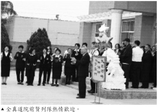 ²Ä¤G¤Ñ¤@¦¡A¦b®ÈÀ]¥Î¹L²³æªº¡uµ}¡v¶º¦À\«á¡A§Ú̪§¨ú®É¶¡¨ì¥[¦{«n³¡ªº®Q®a---¥þ¯u¹D°|¡A¦]¬°¦PÄݰò¦©¾®¤¹D³õ¡C¶ÀÂI¶Ç®v´£¨ì¥þ¯u¹D°|ÂI¶Ç®v¤Î«e½åÌ«D±`·O´d¡A¬°¤Fªï±µ§ÚÌ¡A·í¤é¤@¦´NÄm¨Ñ½Ð¾Â¡A¨Ã¥B´X¤Ñ«e´Nµo°Ê¹D¿Ë¥]¦n§ª«¡A·Ç³Æ·í§@°Ýµªªº¼ú«~¡AÅ¥¤F¯u¬O¥O¤H·P°Ê¦a²´²\³£§Ö±¼¤U¨Ó¡A¹D¿Ë¡B¹D¿Ë¡A³o¥÷¹D±¡¬O¦óµ¥ªº¶WµM¡I§Ö¨ì¹D°|®É¡A»·»·¦a´N¬Ý¨ì¤@¤j¸s¬ïµÛ¨îªAªº¾Çªø§¨¹D¦C¶¤¡B°Ûºq¹ª´x¡A®i¥Ü¤F³Ì²`¼°ªº¿Ë©M¤O¤Î¹ªÀy¡AÅwªï§Ú̳o¸s»·¹D¦Ó¨Óªº«á¾ÇÌ¡C¤ß¤¤¤£§K´q®£¡A¦ó¼w¦ó¯àÅý«e½å̦p¦¹²±¤jªºÅwªï¡H¦b¤G¼Ó²øÄYµÂ¿pªº¦ò°ó°Ñ¥n