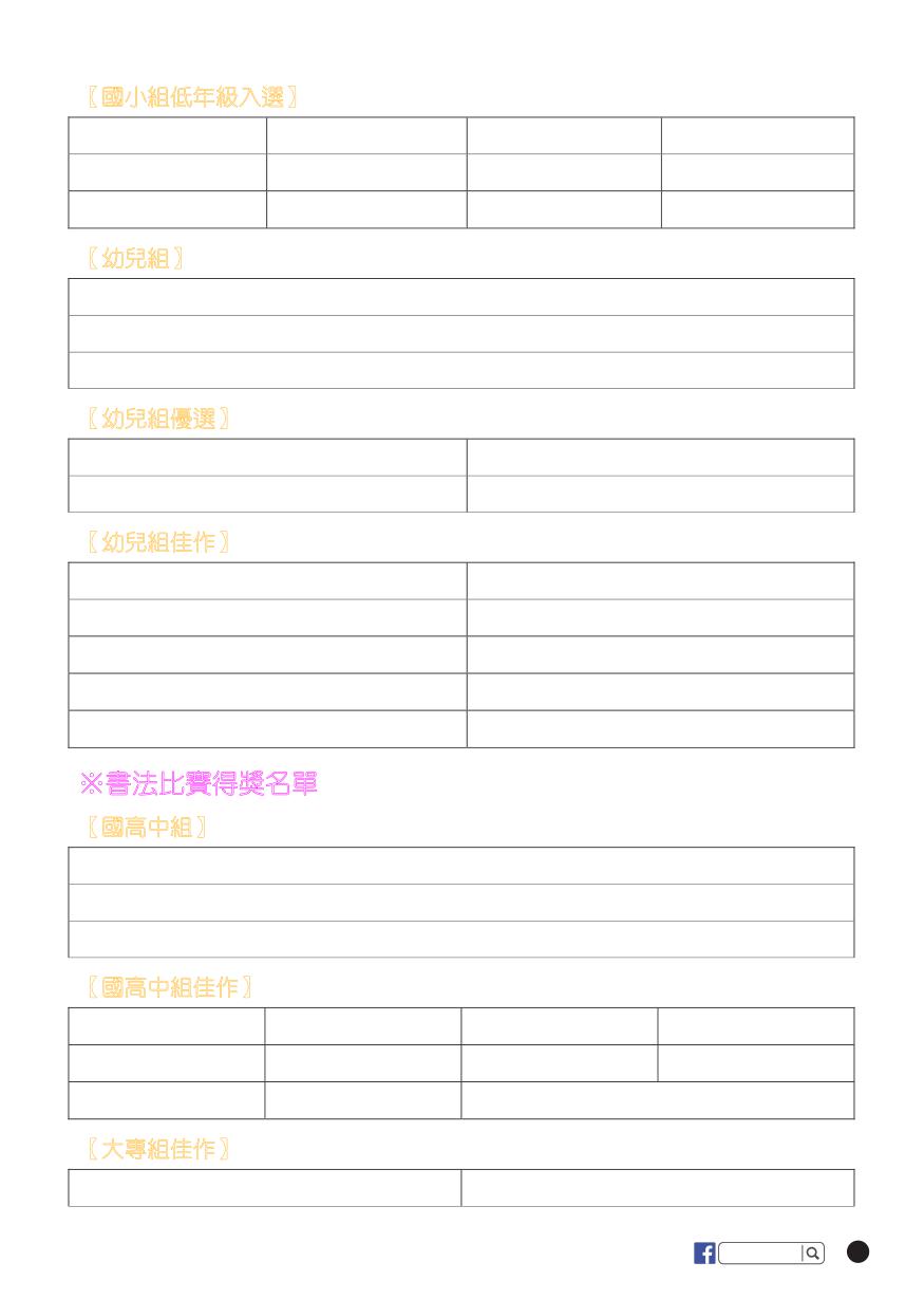 ※書法比賽得獎名單
