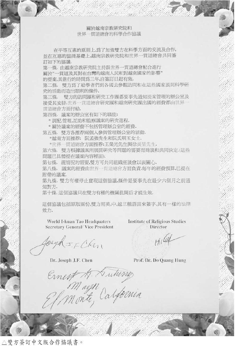 ¤µ¦~ªº¤E¤ë¤G¤Q¤G¤é¡A¶V«n©v±Ð¬ã¨s°|¬£¨â¦ì°|¤h¡G¨¿©s±j³Õ¤h©M¨¿©ú¥ÉºÓ¤h¨ì¥xÆW¡A°Ñ¥[¤@³e¹D¥@¬ÉÁ`·|¦¨¥ß¤Q¶g¦~¤j·|¡C¦b¥xÆWªº¤T¤Ñ¦æµ{¤¤¡A¨â¤H¿Ë¨¥Ø¸@¤@³e¹D¦b¥xÆW¿ì¹D¤»¤Q¦~¡A¹ïªÀ·|ªº½Ñ¦h°^Äm¡A¥H¤Î¤@³e¹D©Ò´£Òªº¾§®a«ä·Qרõ¾Ç¡A¦p¦ó¸¨¹ê¦b±qÓ¤H¦Ü®a®x¨ìªÀ·|¾ãÅé¤u§@±À°Ê¹êªp¡F±q¤ßÆF¤Wªº¡u¤ß¥¿¡v¦Ó«á¡u·N¸Û¡v¡A¦Ó«á¡uª«®æ¡v¦Ó«á¡uPª¾¡v¡F¨ìÓ¤H¯À¾i¤W¤§¡uר¡v¦Ó«á¡u»ô®a¡v¡A¦Ó«á¡uªv°ê¡v¦Ó«á¡u¤Ñ¤U¥¡v¡C