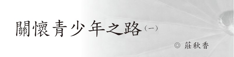 關懷青少年之路(一)/莊秋香 小燕已經走了,因為生病而離開,那樣的乖巧讓吳壇主最放心,甚至是將來承接佛堂的最佳人選竟然走了,怎不叫人痛心?留下一名可愛又可憐的女兒—「瑄」。