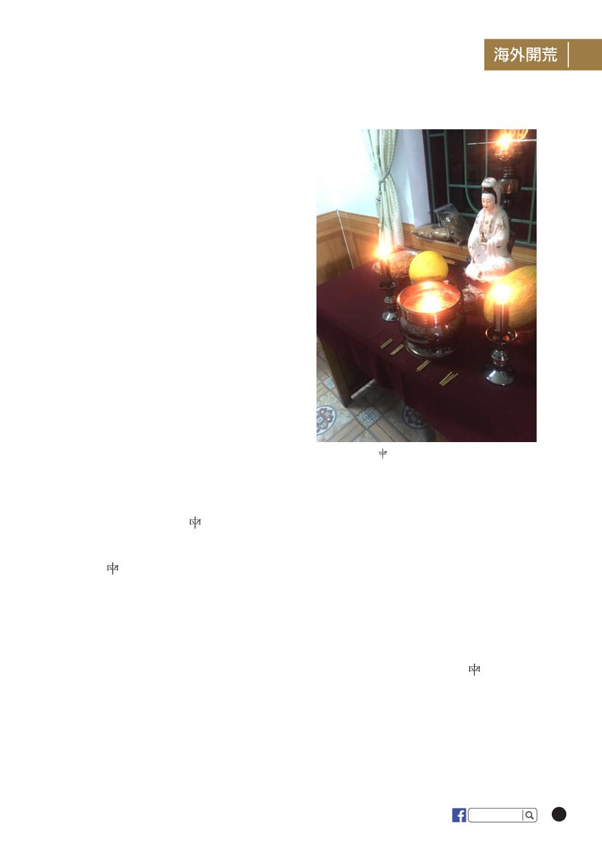 壁上觀音像誠心禮拜。阿婆相信在她