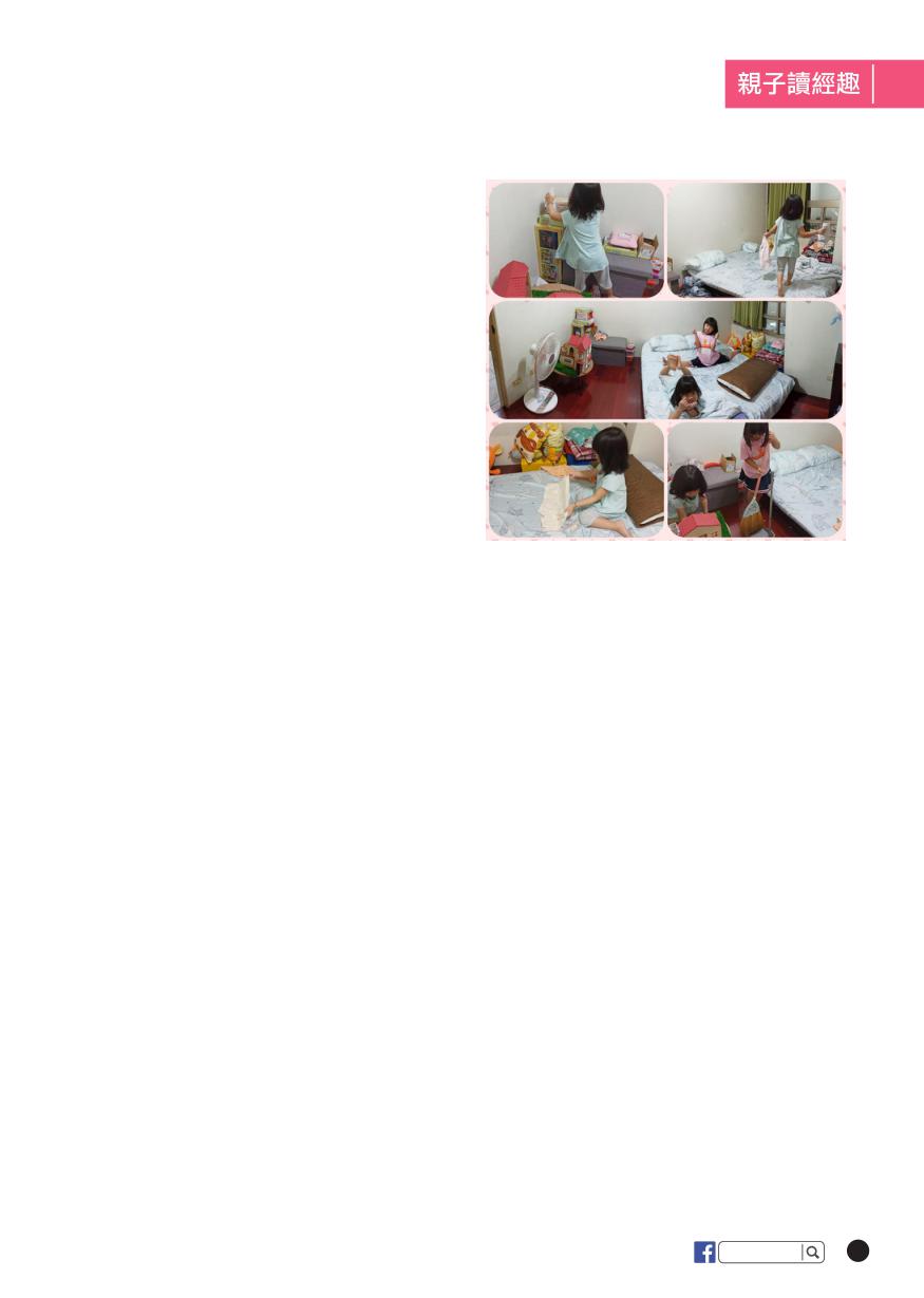 小朋友在家協助各種家事。