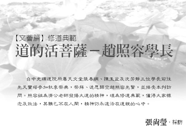 ¥x¤¤¥ú½÷¹D°|©ÒÄݤѤå°ó±i¬Kº÷¡B³¯¥É¬Ö¤Î¨HªÚÀR¤T¦ì¾Çªø«e©¹¥ý¤ÑÄ_¶ð°Ñ¥[¬î©u²½¨å¡A²½«ô¡B°l«äÂkªÅ»¯·Ó®e¥ý½å¡A¨Ã±µ¨ü¥»¥Z³X°Ý¡C·Ó®e©j¬°ÀÙ¤½¦Ñ®vµo´¤j¹Dªººë¯«¡A³ô¬°×¹D¨å½d¡Aȱo¤j®aÃh©À¤Î®Äªk¡A¨äÁö¤w¤£¦b¤H¶¡¡Aºë¯«¤´¥Ã»·¬¡¦b¹D¿Ëªº¤ß¤¤¡C ×¹D©n©f²^ ¦oªºÂkªÅ¡AÅý«Ü¦h¤H¸U¤À¤£±Ë¡C