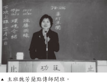 10點時,魏芳蘭主班點傳師慈悲開示,諄諄的告誡修道要時時返觀自心,學習佛規禮節,止語養氣………,讓我們受益良多。10點半,由周文陣點傳師介紹萬里德光講堂興建的緣由。在點傳師的簡介後,更加體證前賢們修辦歷程的艱辛。接著由兩位學員分享三寶的見證,其中有位吳學長因為他太太身體欠安,開刀住在加護病房,難能可貴的夫妻結髮之情,他在求道當天就以最真誠的心來向上天表白,立愿清口茹素,以功德迴向給太太,因此讓太太能渡過危險期,現已康復在家中休養。活佛師尊曾提到「真心向道,誠心以對,就在今天歸隊,從此展翅高飛,人生方向已然明確,無懼狂風暗夜,有師與徒相隨,共譜生命真善美,就在今天醒覺。」我們在修辦的過程中雖然會有些波折,只要以「真誠之心」面對,終究會有雨過天晴的一天。