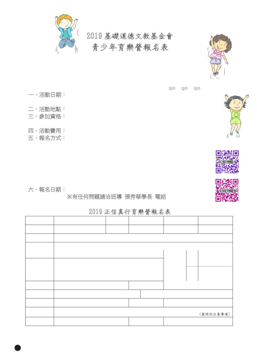 2019 正信真行育樂營報名表