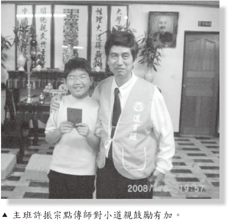 後學的孩子也在道學培育班成長,孩子變得更有自信。在一次學校舉辦的家長日裡,老師跟後學講:「你的孩子很有愛心,是一個熱心服務的好孩子。」聽到老師這般的讚許,心中感到非常的欣慰。