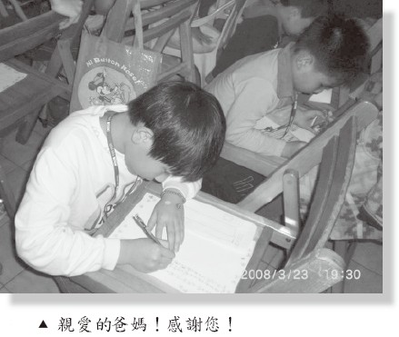 因為我身為家長,常耳提面命的叮嚀這個、注意那個的,倒還不如道培班老師的一句關懷小語。做家長的有多大的本事能將自己的小孩教育得既輕鬆又品學兼優,基本上,只能借力使力的讓小孩在道培班這樣好的磁場中,默默看著他們一點一滴吸收學習,企盼好的能量能在日後發揮,並轉化成他們擁有與眾不同特質中那股不可輕忽的成長動力。