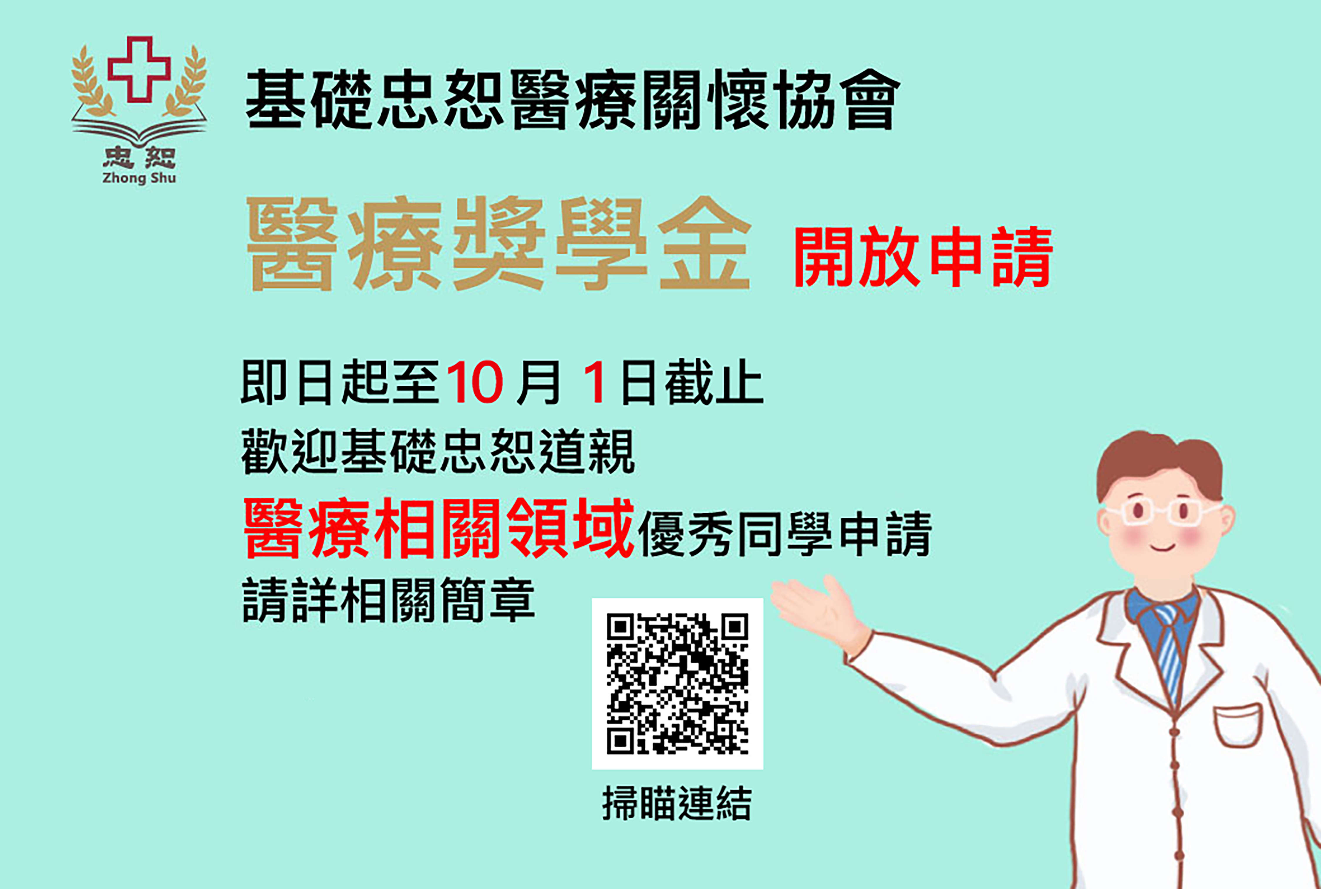 一貫道基礎忠恕醫療關懷協會醫療獎學金開放申請